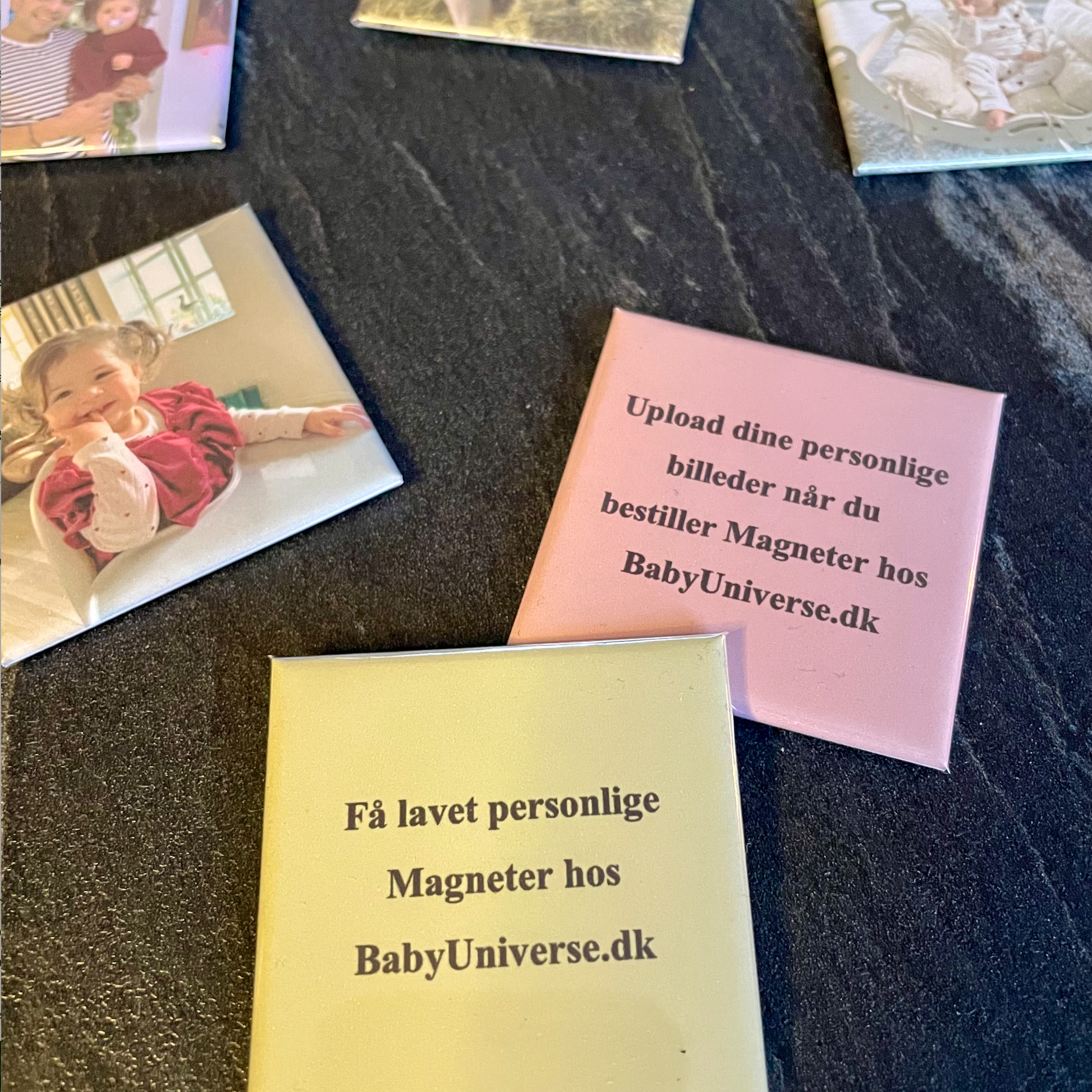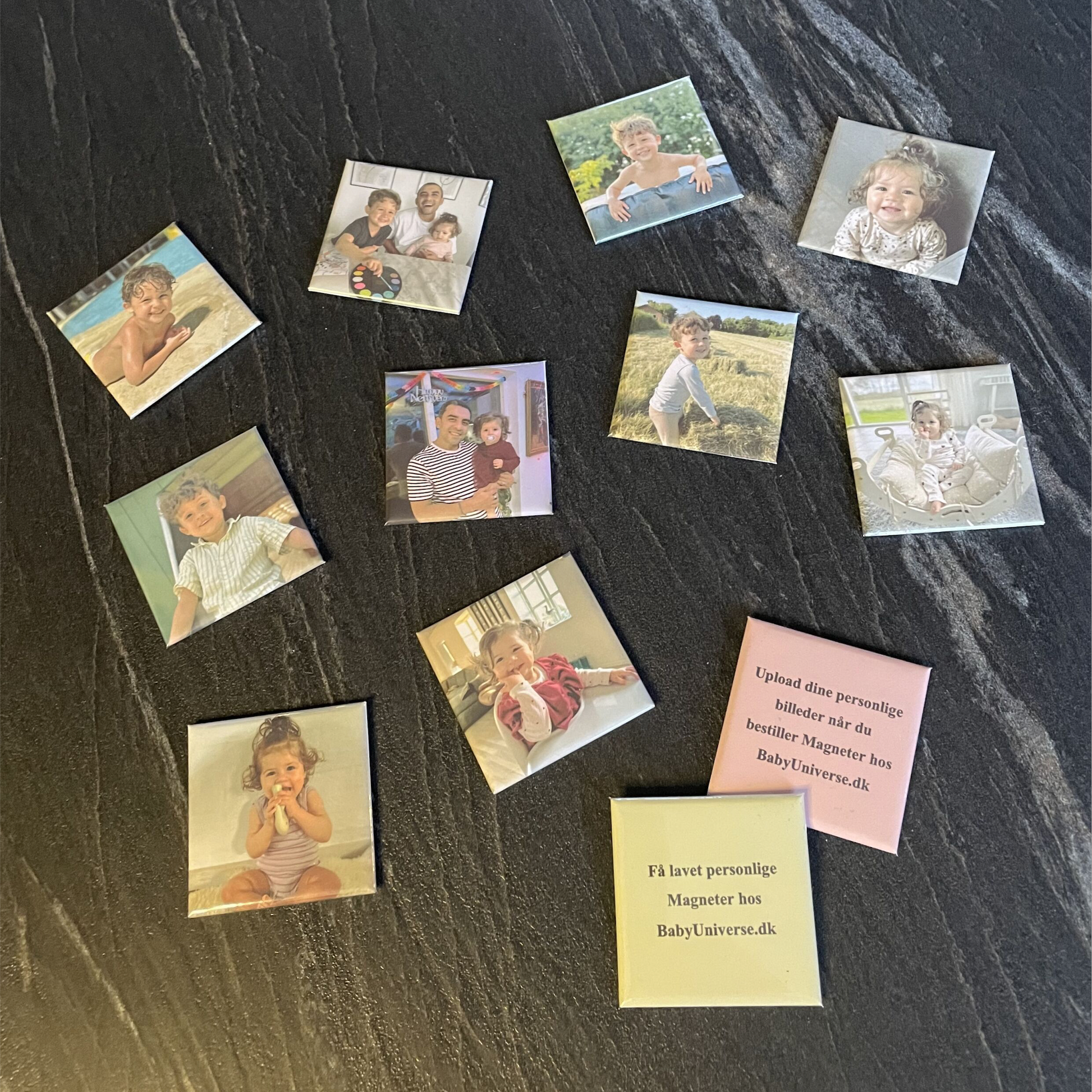 Få personlige billeder efter eget valg på 6 eller 10 magneter, som fremstilles i eget værksted i god kvalitet.